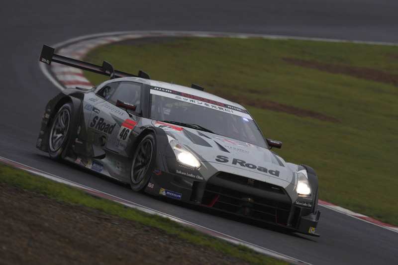 從占據(jù)優(yōu)勢(shì)的第5位發(fā)車(chē)后,駕駛#12 GT-R的奧利維拉以穩(wěn)健的操控技能一直保持在第4名。更換車(chē)手后,安田也一直保持著這一名次,但是,在比賽后期,他的成績(jī)跌至第7名,由于再次開(kāi)始下雨,賽車(chē)滑出賽道,成績(jī)也再次下跌。雖然賽車(chē)毫發(fā)無(wú)損地返回了賽道,由于需要進(jìn)入維修區(qū)更換輪胎,他最終取得第9名,但卻為車(chē)隊(duì)拿下了寶貴的積分。由佐佐木駕駛的#24 GT-R從第14位發(fā)車(chē),雖然賽道濕滑且不斷有賽車(chē)滑出賽道,他成功拿下第10名,為車(chē)隊(duì)賺取了一分寶貴的冠軍積分。