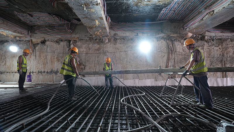 自2021年7月車站主體結構正式進入施工以來,歷時357天完成主體結構封頂,在面對各工程交錯施工帶來的風險高、難度大、施工作業面狹小、地下管線眾多、施工組織復雜、工期緊等因素影響,項目部不等不靠,見縫插針,積極與各管線產權單位協調,不斷優化管線遷改和交通疏解方案。在前期技術準備、質量控制、安全措施和應急預案等方面做了全面部署,多次組織專家進行方案優化論證。