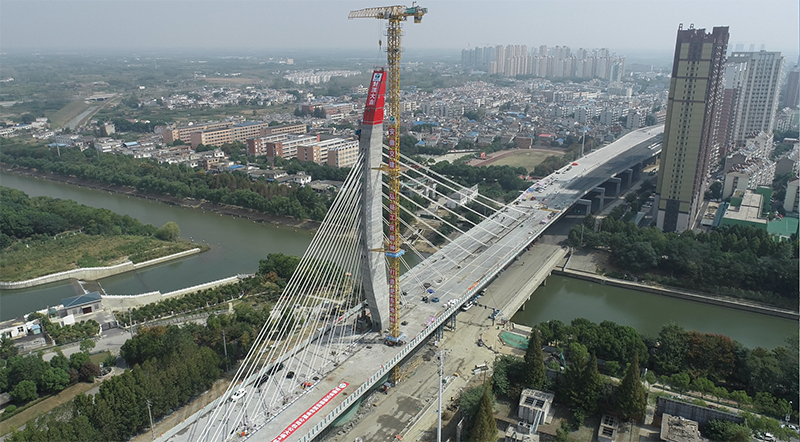 國慶獻禮:包公大道跨店埠河斜拉橋主塔順利封頂