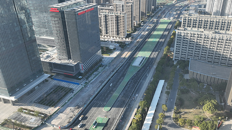 宿松路下穿地道全長1251.3m,其中北側敞口段136.3m,暗埋段長975m;南側敞口段長140m,共42個節段。與繁華大道十字相交段的雙層下穿疊合段自3月14日開挖至今,歷時283天,實現宿松路下穿地道結構貫通,比計劃工期提前160天!