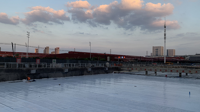 宿松路快速化改造工程地處城市建成區,周邊環境復雜,施工面臨地下管網縱橫交錯、基坑開挖深度大、結構防裂、防水要求高等難題。面對復雜而苛刻的條件,安徽交建項目部實現了多項行業“首創”:針對市政干作業基坑圍護樁垂直度控制不佳,我部采購2臺RSM-HGT(D)型超聲波成孔質量檢測儀對樁基垂直進行檢測、及時糾偏;施工過程中使用全站儀對旋挖鉆機桅桿垂直度進行檢查、糾偏;為有效控制地道側墻混凝土裂縫,選擇摻加ART-MPC無機納米抗裂密實劑,提高混凝土抗裂性。養護采用水能量節水保濕養護膜,將液態水轉化為固態水,通過毛細管作用,源源不斷的向養護面滲透,同時吸收砼水化熱過程中蒸發水,在一個養護周期內保證養護體表面保持濕潤,相對濕度≥90%;為避免變形縫滲水情況,施工過程中增設一道中埋式止水帶。同時針對止水帶安裝及焊接等薄弱環節加強控制,安排固定人員培訓,舉辦焊接比賽,提升焊接技術。