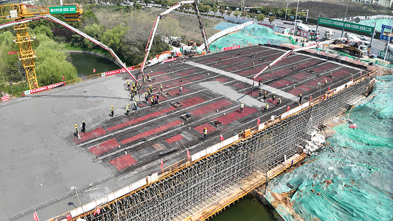 4月2日晚上8點08分,隨著最后一方混凝土的澆筑完成,由安徽省交通建設股份有限公司承建的廬陽區固鎮路(金桔路-大房郢路)道路施工項目上跨四里河及四里渠東路橋梁頂板現澆全面完成,標志著該項目主體結構施工結束,即將進入橋面及附屬施工階段。