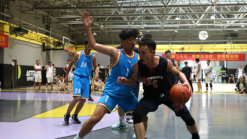 隨著一聲哨響,東、西兩側(cè)場地運(yùn)動(dòng)員在裁判拋出的籃球面前,屈膝發(fā)力,伸直手臂,“啪”的一聲,完成跳球,比賽正式開始。賽場上球鞋摩擦地面,籃球砸地的聲音此起彼伏,場周吶喊助威的聲音不絕于耳。此時(shí)的他們拋下平日里工作時(shí)的嚴(yán)肅形象,身影矯健、防守周密,拼盡全力奮力廝殺,他們勇敢果斷、活力無限。他們用精湛的球技和堅(jiān)韌拼搏、誓不言敗的精神,為觀眾們奉獻(xiàn)了許多精彩的瞬間。